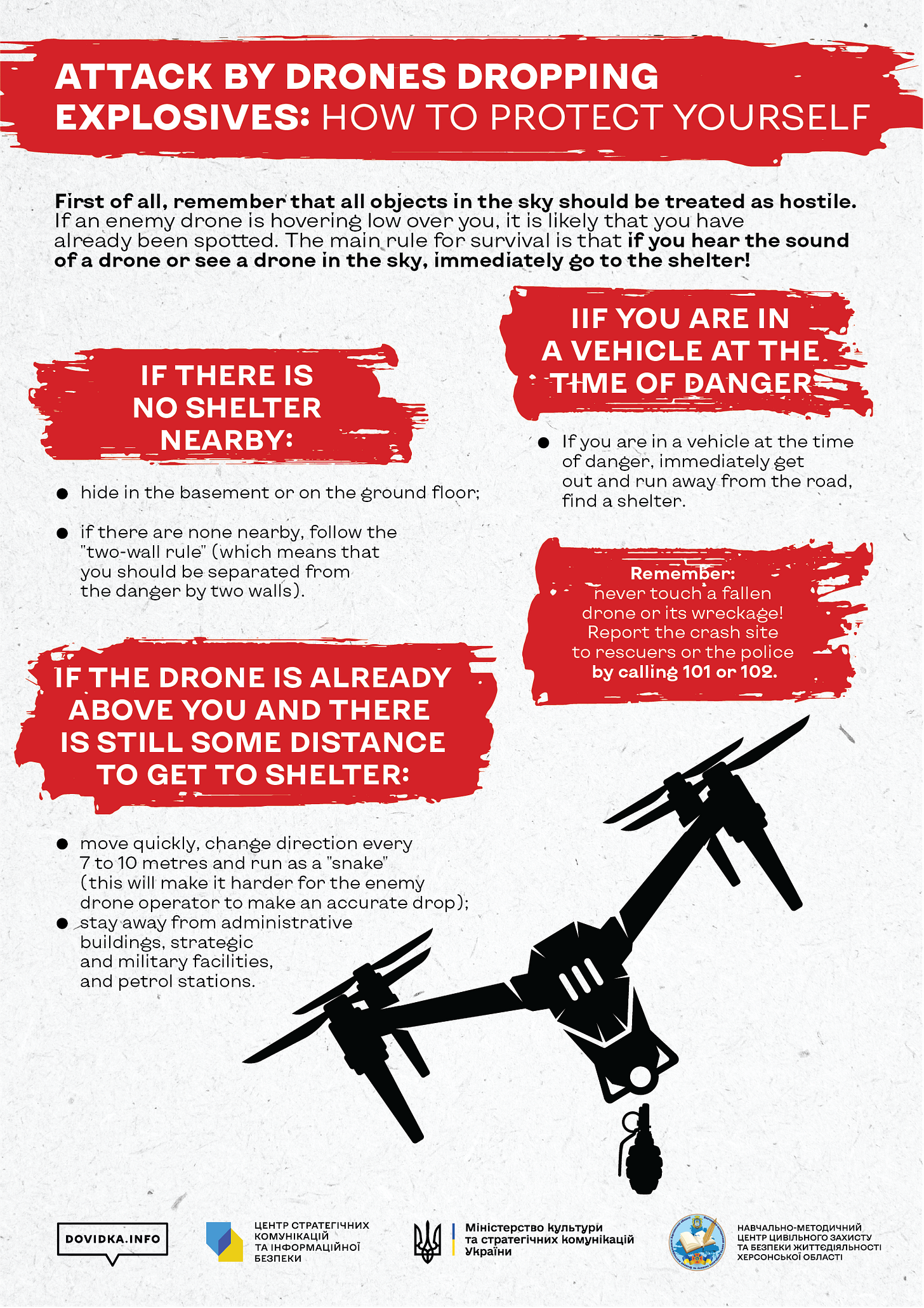 In the face of the relentless sound of drones, like an endless bee swarm always nearby, life continues in Kherson, now in the underground spaces beneath the dangerous streets. A dance teacher continues to teach classes underground while artillery sounds overhead. A woman dyes her hair a different color every month and writes poetry in bomb shelters. A man uses the pencil his captors gave him to sign a false confession to create a chessboard to protect his mind from torture. Another man, whose nickname is "Little Sunshine," delivers humanitarian aid daily despite being injured by drones multiple times. When part of his house burns down, he writes to Zabrisky "Tears and whining are not for us."